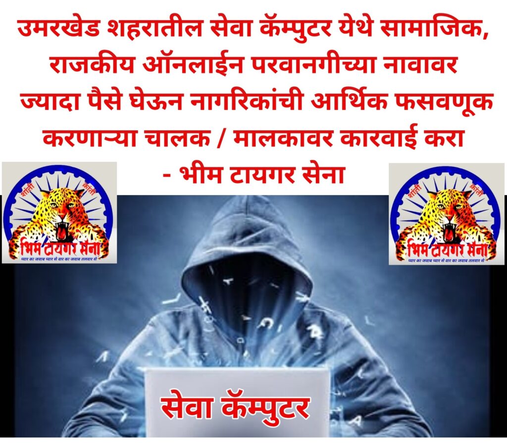 उमरखेड – शहरातील सेवा कॅम्पुटर येथे गणेश उत्सव दुर्गा, उत्सव धम्मचक्र प्रवर्तन दिन, राजकीय कॉर्नर सभा इत्यादी अनेक सामाजिक, राजकीय ऑनलाईन परवानगीच्या नावावर 500 रुपये घेतले जात आहेत, मूळ फी ही 64 रुपये एवढीच आहे.